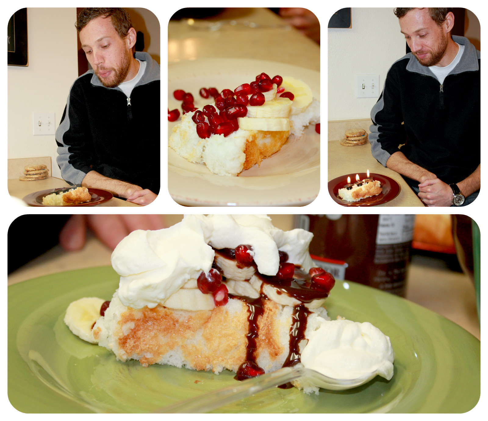 After our tour of the house we went home to have dessert. Has anyone made angel food cake? It is not my favorite to prepare. Anthony requested it in lieu of a traditional birthday cake this year. Note to self: When it says to plan for batter expansion, believe the box. After 20 minutes the batter was overflowed and all over the oven. The house smells like burnt marshmallows which borders between pleasant and nasty. It's odd. Luckily I made it before church so the smell had time to dissipate a little.